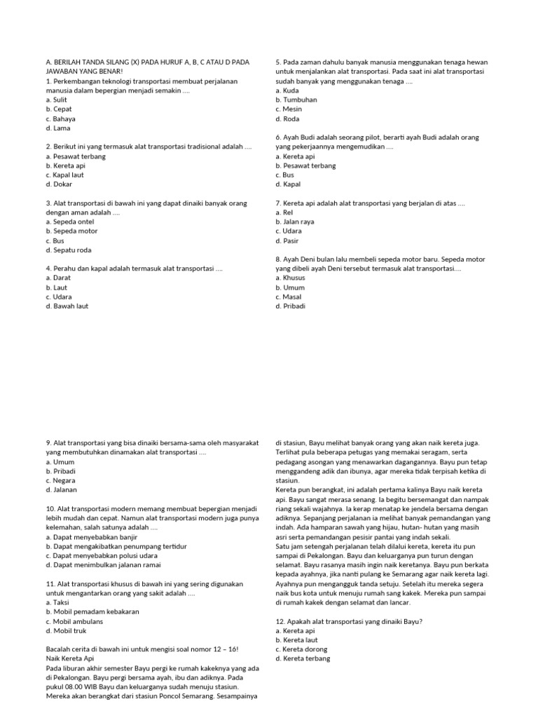 Kemampuan membaca dan memahami teks merupakan fondasi penting dalam belajar Bahasa Indonesia. Soal-soal pada bagian ini menguji kemampuan siswa dalam memahami isi teks, menemukan informasi penting, serta mengidentifikasi ide pokok dan gagasan pendukung.
